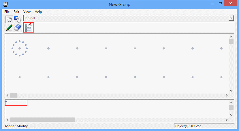 In the New Group window, click the Set Mode button to switch to the set mode (the mode in which the icons can be laid out in the job flow display area). (The set mode is automatically applied by selecting a job net icon.)