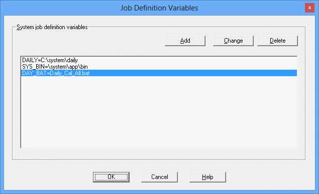 Only a system administrator (a member of the Administrators group in Windows and the superuser in UNIX) can add, change or delete job definition variables.