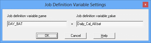 Set the job definition variable name (the variable name component in "@variable name@") and the value of the job definition variable and click the OK button.