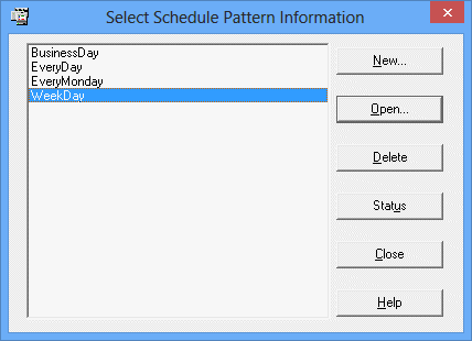 Double-click the schedule pattern you want to change from the schedule pattern list in the Select Schedule Pattern Information window or select the schedule pattern you want to change and select Open to display the Schedule Pattern Information window.