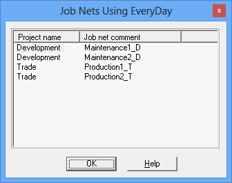 To browse the list of job nets that use the selected schedule pattern, click the Status button to display the Job Net Using window.