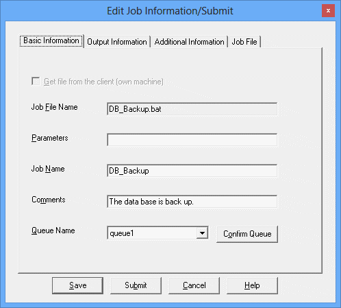 Figure 5.2 Edit Job Information/Submit dialog box - Basic information sheet