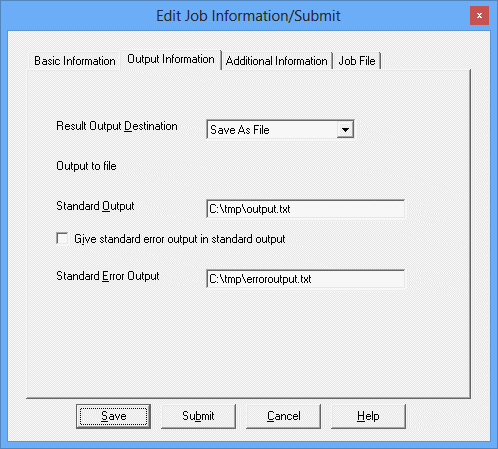 Figure 5.3 Edit Job Information/Submit dialog box - Output Information sheet
