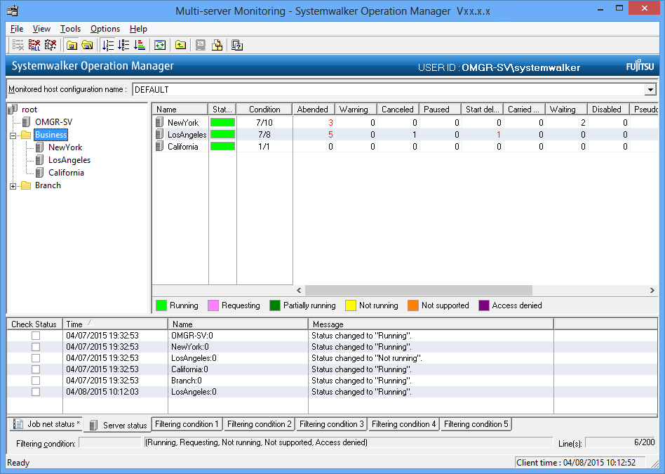 If the server group or the server to be monitored operates on multi-subsystem operation, the status of the subsystem will be displayed with color coding.
