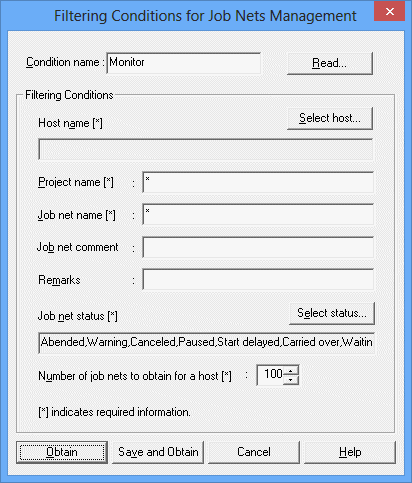 Figure 6.17 Filtering Conditions for Job Nets Management window