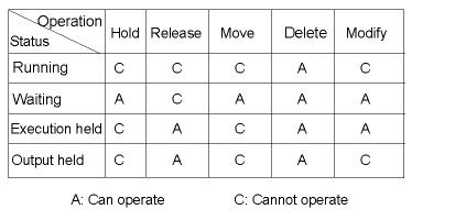 The following table shows the operations that can and cannot be carried out for each scheduled job status.