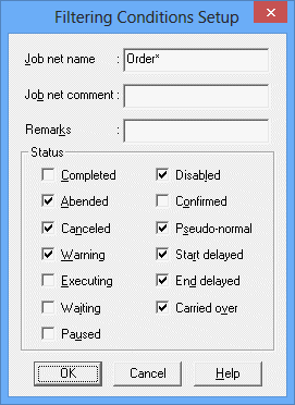 Filters the status of the job net to output. Select one or more items.