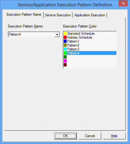 Click OK in the Service/Application Execution Pattern Definition dialog box. The newly-registered user-specific definition pattern name will be added to the Execution Pattern List in the Service/Application Execution Pattern Definition dialog box. Up to seven patterns can be registered as the user-specific definition patterns.