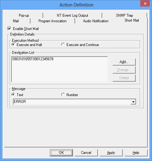 Figure 11.9 Action Definition dialog box -Short Mail sheet