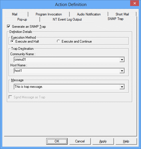 Figure 11.10 Action Definition dialog box - SNMP Trap sheet