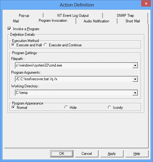 Figure 11.11 Action Definition dialog box - Program Invocation sheet