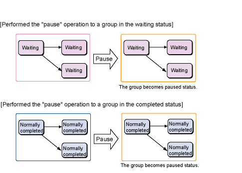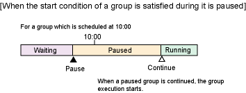 If the execution conditions are satisfied while the group is being paused, the group will be started after resuming.