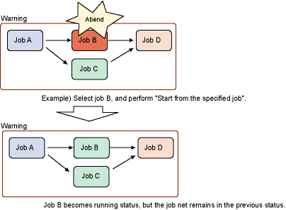 If the job net is in the warning status, however, the status of the job nets and the job nets of higher-level layers will not change even after recovery operations.