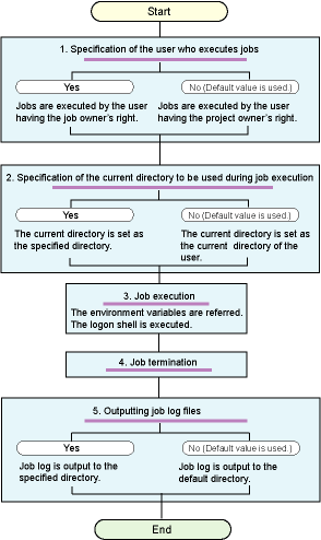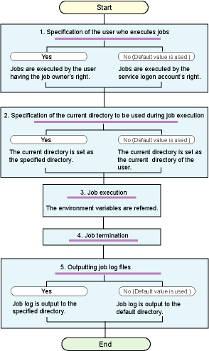 The following explains a process flow of jobs from the time when they are started to the time when terminated by Job Execution Control.