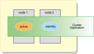 The clustered system consists of one active node and one standby node. The active node performs transactions while the standby node is waiting to become the active node, when required.