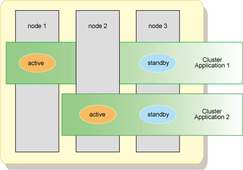 The clustered system consists of N active nodes and one standby node. Each of the N active nodes performs separate transactions while a separate standby node stands by to take over from any failing active nodes.