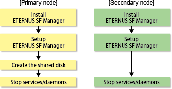The installation workflow is shown below.Perform the installation first on the primary node and then on the secondary node.