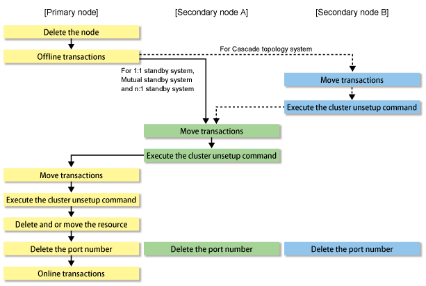 The following flow is the deletion procedure of the cluster environment for Managed Server transaction.