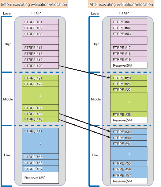 If free space of the reserved area size required for evaluation/relocation does not exist in Tier pools, evaluation/relocation fail. In that case, after expanding Tier pool capacity or referring to "2.2 Configuration of Tier Pool" to secure the reserved area required for evaluation/relocation, execute evaluation/relocation.