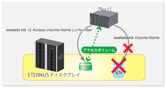 このため、事前に、SDVとは別のボリューム(アクセスボリューム)を準備しておくことを推奨します。