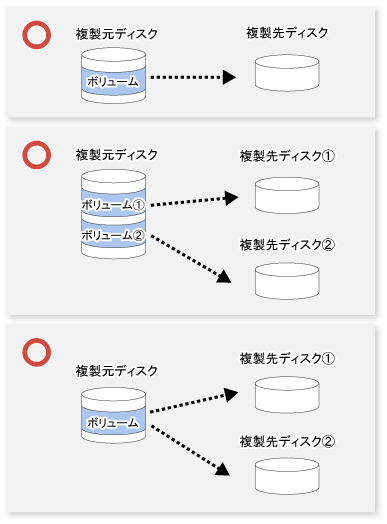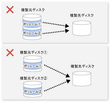 複製先ディスクの論理容量は、複製元ディスクと同じ容量に設定してください。