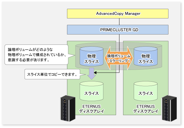 PRIMECLUSTER GDのSDXオブジェクトをスライス単位で複製することが可能です。