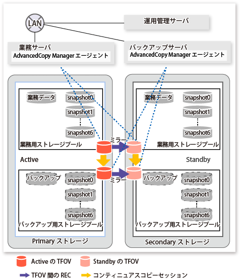 | 2 | 業務用ストレージプールのスナップショットを作成します。 | 業務サーバ |
