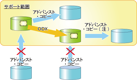 注: ファームウェア版数がV10L50より前の以下のETERNUS ディスクアレイでは、ODXセッションが実行中のボリュームに対して、AdvancedCopy Managerによるアドバンスト・コピーを実行できません。