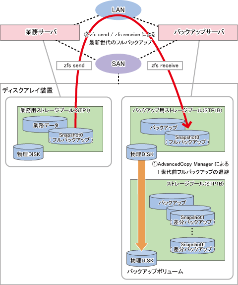 ZFSのスナップショット機能(以降、“ZFSスナップショット”と略します)とAdvancedCopy Manager機能を利用したオンラインバックアップ(推奨)
