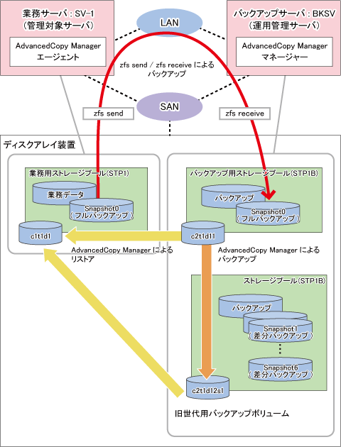 バックアップサーバ(運用管理サーバ): BKSV(AdvancedCopy Managerへの登録名)