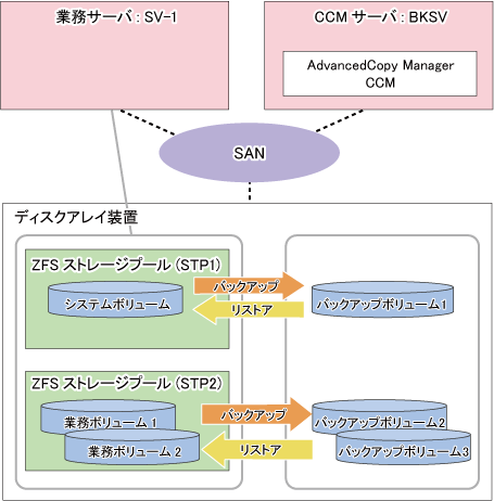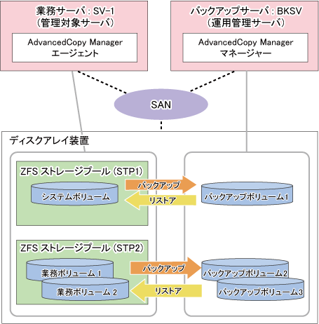 業務サーバ(管理対象サーバ): SV-1 (AdvancedCopy Managerへの登録名)