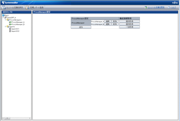 次に、個別取得、または一括取得ボタンをクリックして、管理対象のProxy Managerから、管理するための構成情報の取得を行います。構成情報の取得が正常に行われた場合、取得した日時がボタンの左側に表示されます。