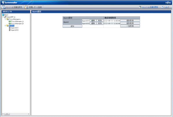個別取得、または一括取得ボタンをクリックして、管理対象のAgentから、管理するための構成情報の取得を行います。