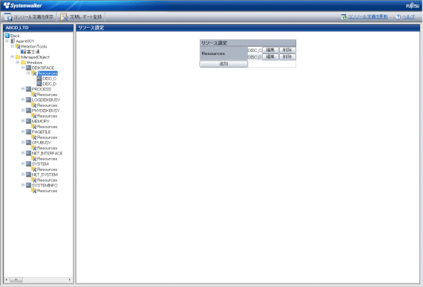 追加ボタンをクリックして表示されるリソース情報画面にて、リソースに関する情報を設定します。