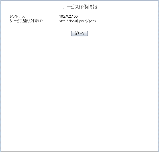 サービス監視対象URL | Manager上またはProxy Manager上で、HTTPサービス稼働管理で定義したサービス監視対象URLが表示されます。 | |