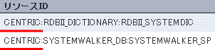 この場合、"CENTRIC" 以降の "RDBII_DICTIONARY" や "SYSTEMWALKER_DB" を指定する。