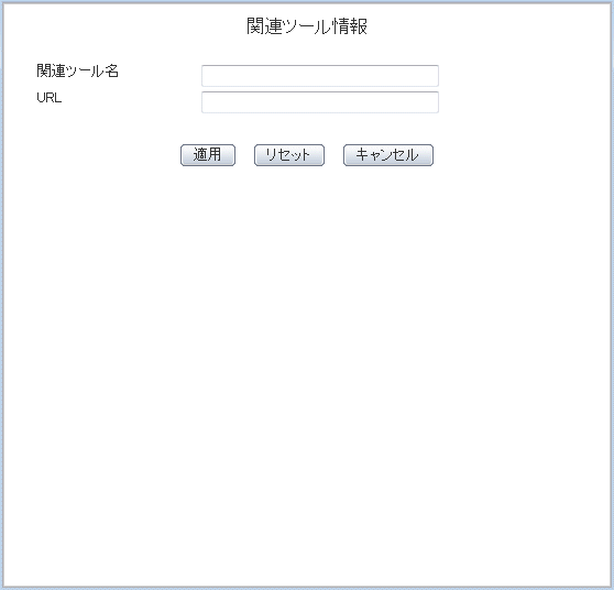 追加ボタンをクリックして表示される関連ツール情報画面にて、関連ツールに関する情報を設定します。