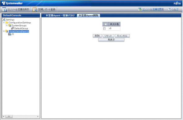 [未登録Agent削除]タブをクリックすると、[未登録Agent削除]画面が表示されます。