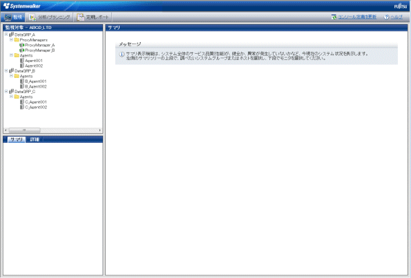 | (4) | コンテンツ表示域 | ツリーのノード選択により、サマリまたは詳細表示の各コンテンツが表示されます。 |