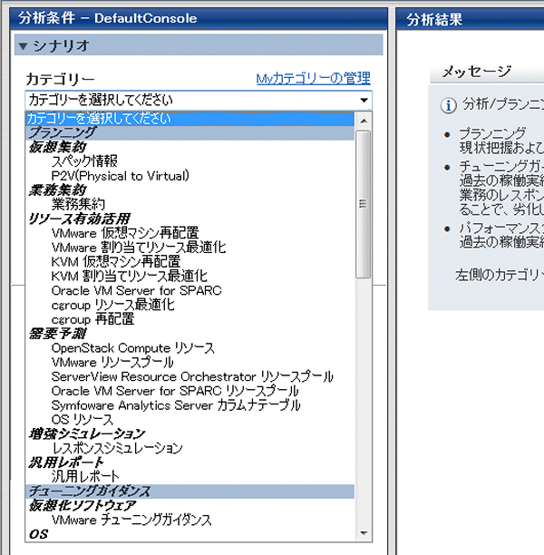 [分析/プランニング]画面では、運用の目的ごとにシナリオを用意しています。表示されるレポートを順に確認していくことで、目的に沿った分析やプランニングを行うことができます
