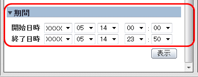 レポートの種類によって、[期間]域が表示されます。内容は、指定したレポート種別によって異なります。