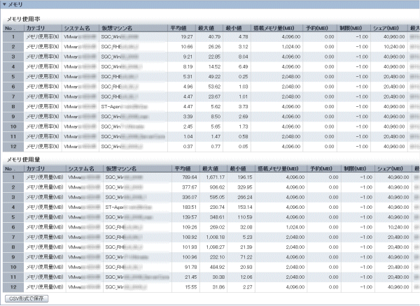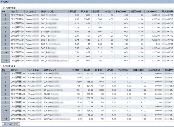 CPU使用率やメモリ使用率でソートするなどしてリソースに空きがある仮想マシンを検出し、使用率の低い仮想マシンに対して、リソース割り当てを削減できるか検討します。
