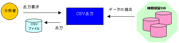 CSV出力は、利用状況分析機能の利用状況DBのデータを、データ種別に応じてCSV形式でファイルへ出力するコマンドです。