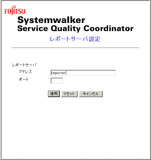 [レポートサーバ設定]画面では、レポートサーバがインストールされたホストに関する情報の設定を行います。