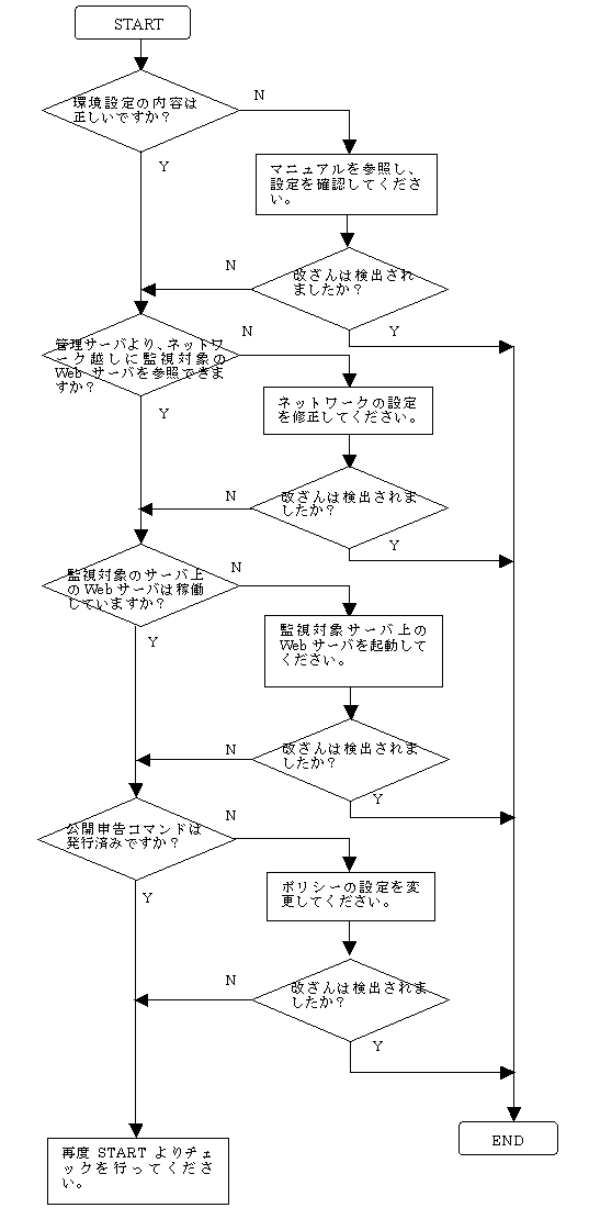 - | 監視対象のサーバ上にあるWebサーバは稼働していますか? | 監視対象サーバ上のWebサーバを起動してください。 |