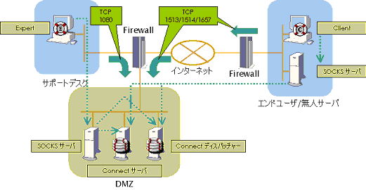 SOCKSプロキシサーバ経由での構成例として、以下の図を説明します。