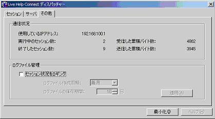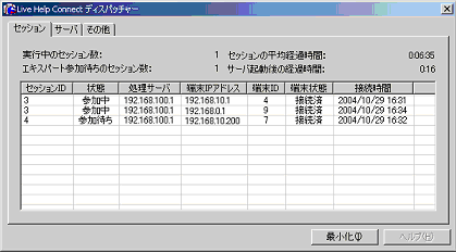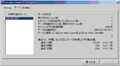 サーバに接続している[Live Help Expert]および[Live Help Client]数 現在