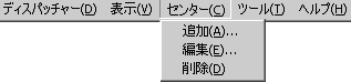 ディスパッチャー | 表示 | センター | ツール | ヘルプ |