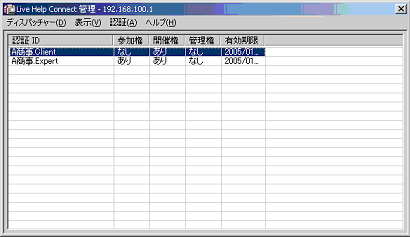 センター名 | サポートセンター名。ExpertおよびClientの属するグループ名 | |