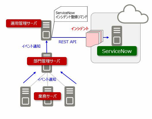 図2.9 運用管理サーバからServiceNowにインシデント登録を行う場合
